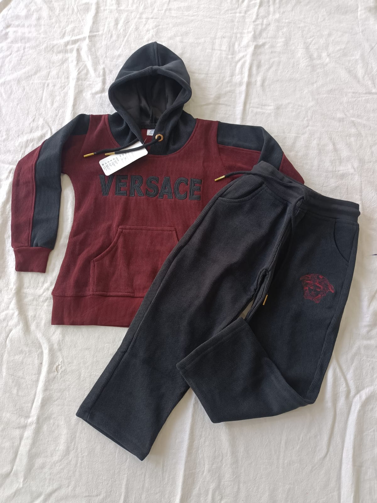 Elegant **Prewinter Versace unisex cord sets** tailored from premium warm fabric for a cozy yet stylish feel. With signature Versace detailing and a versatile fit, these co-ords offer the perfect balance of comfort and high-end fashion—ideal for both casual wear and statement looks in cooler weather.